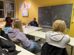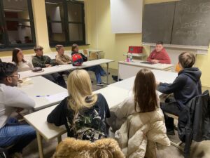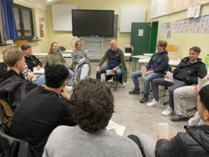 Und er ist nur einer von zahlreichen Gästen, die sich Zeit genommen haben, um am Berufsexpertenabend 2025 teilzunehmen. Die Schülerinnen und Schüler der Jahrgangsstufen 11 (EF) und 12 (Q1) hatten hier Gelegenheit, zum Beispiel in den Berufsbildern der Medizin, der Rehabilitationspädagogik oder des Lehramts Kurzvorträgen zu lauschen und im Anschluss ihre individuellen Fragen zu stellen. Unter anderem waren auch Sportwissenschaften, Zoll, Journalismus, Sozialpädagogik, Wirtschaft, Industriedesign, Gerichtswesen, Biochemie und das Finanzamt vertreten. Die Schülerinnen und Schüler konnten sich in zwei Vortragsrunden für ihre Interessen entscheiden. Inhaltlich reichte das Spektrum von anfangs guten Ratschlägen, wie im Bereich des Rechtswesens, dass man bitte die Finger davon lassen solle, wenn man sich diesen Beruf so vorstelle, wie er in TV-Gerichtssendungen präsentiert werde, bis hin zu sehr detaillierten Vorgehensfragen bezüglich eines konkreten Studiengangs. Auch zum Thema Selbstständigkeit mit kreativen Berufen gab es praktische Tipps vom freischaffenden Kameramann.